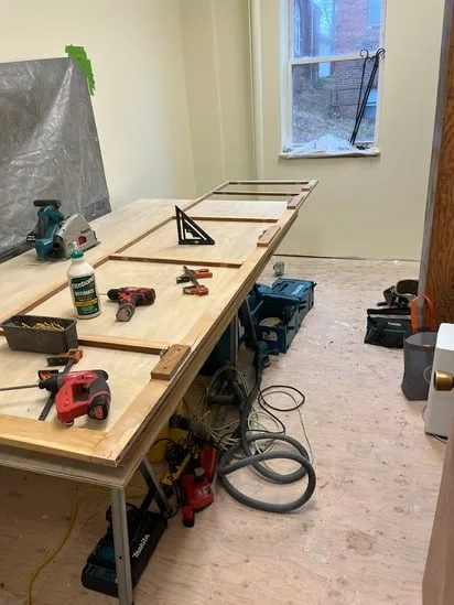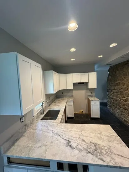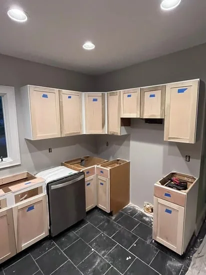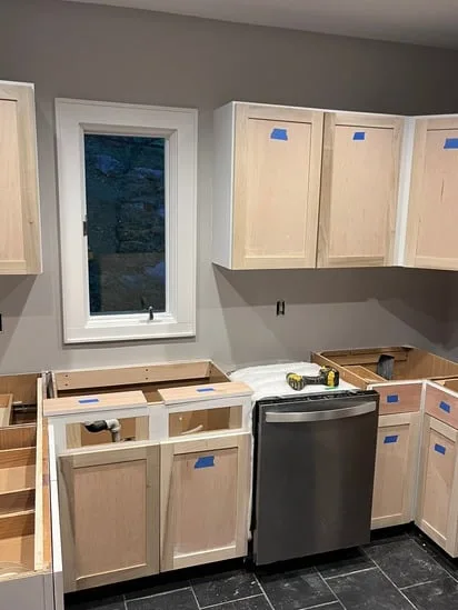 This project focused on a custom kitchen cabinet installation that combined craftsmanship and functionality. The work included the design, assembly, and installation of tailored wooden cabinets with a smooth, painted finish. Moreover, each piece was carefully measured and fitted to optimize storage space while maintaining aesthetic harmony with the existing layout. Additionally, marble countertops were installed to enhance the visual appeal and durability of the kitchen. The project also involved detailed sanding, sealing, and painting to achieve a seamless finish, resulting in a modern, cohesive look that complements the home’s interior design.